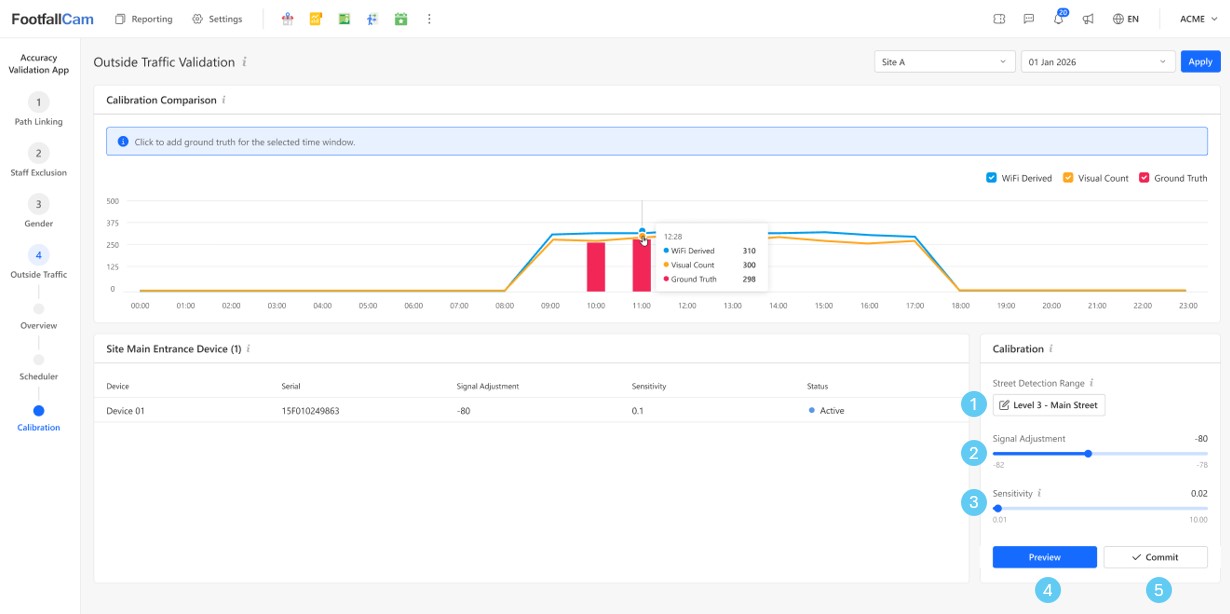 Navigate to Accuracy Validation App → Outside Traffic → Calibration