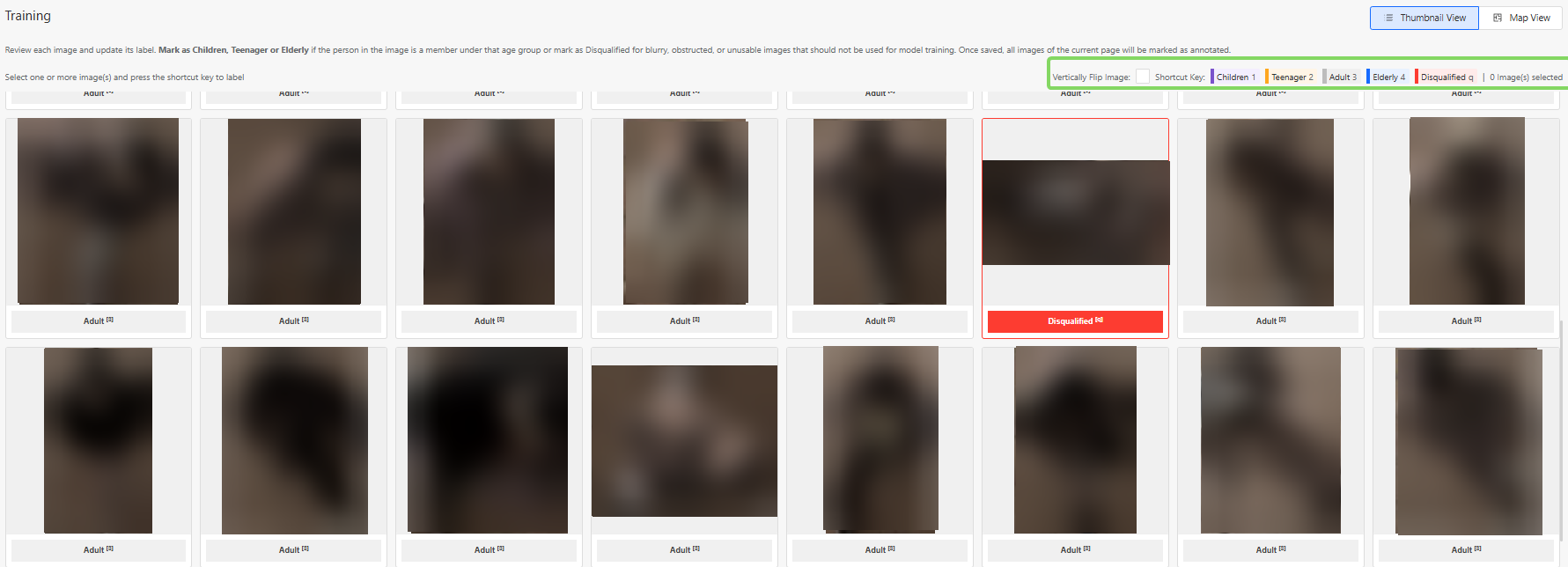 If the image shows an Adult, no action is required, as Adults are considered the default category. However, if you wish to change the status to "Children" or "Teenagers" or "Disqualified", select all relevant images and press the respective button or its assigned number/letter.