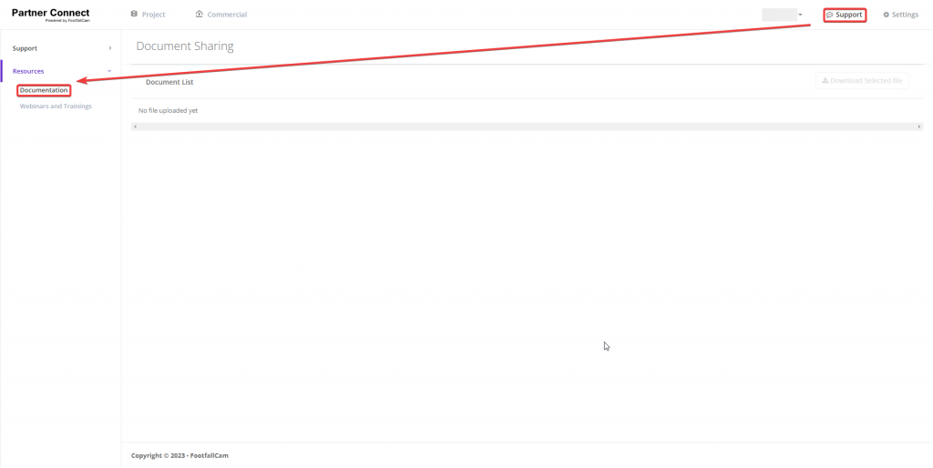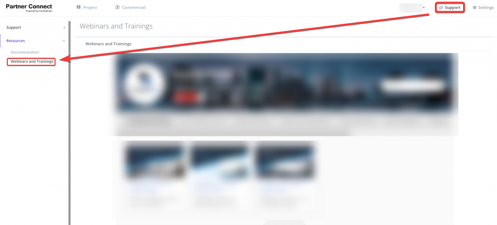 In the Resource section, Documentation & Webinars and Trainings options could be found.