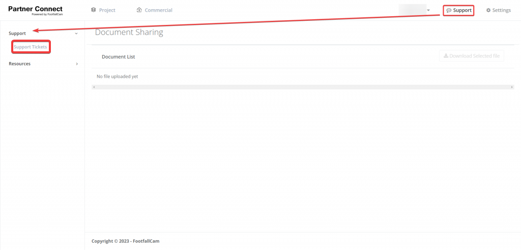 Support Tickets could be accessed within the Support section.
