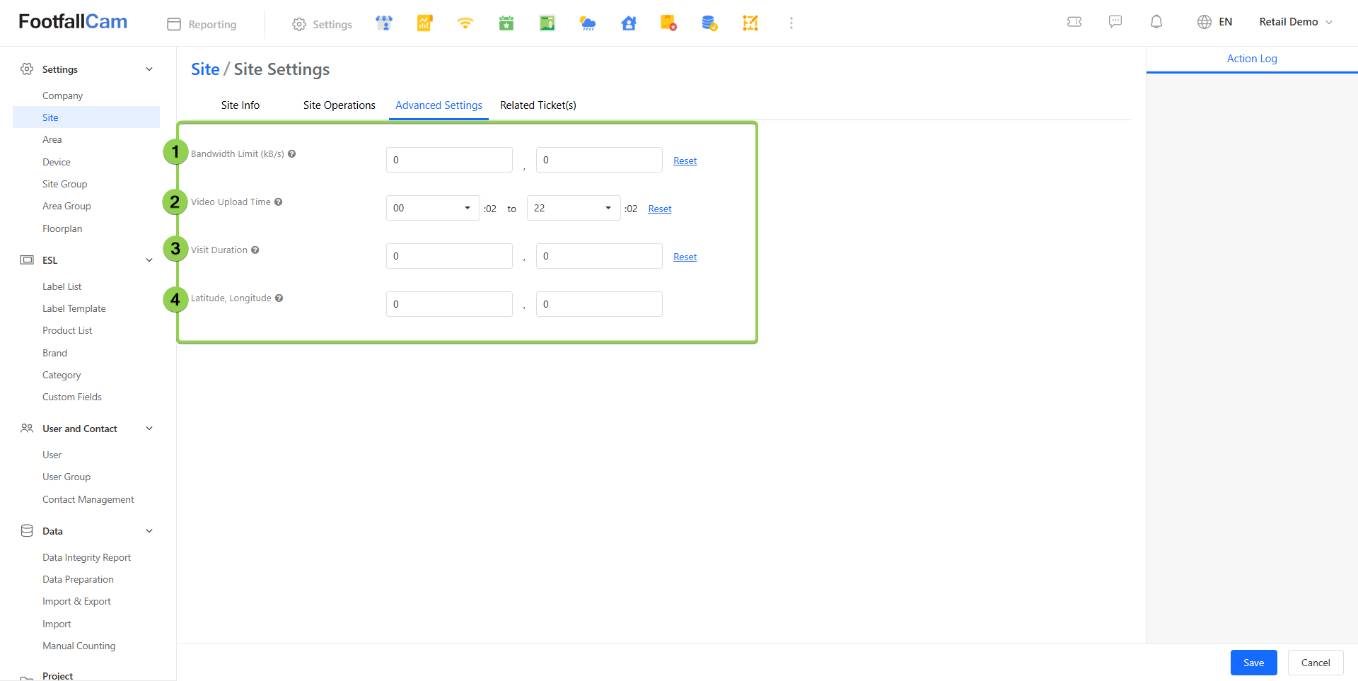 | 2. Video Upload Time | Enter video upload time (Info: Site name inserted will be applied to features in FootfallCam Analytic Manager V9™.) |