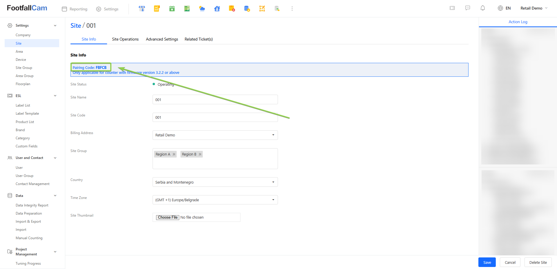 Site refers to a store of the company, grouping the devices installed at the respective store and summed the counting data collected from all the devices. For retail chain, one site per one store is required, so that the higher management able to review the overall company performance and individual store performance separately. Site creation is required before device can be added to the portal. In this section, we will explain about the set up related to sites such as create, edit and remove sites.