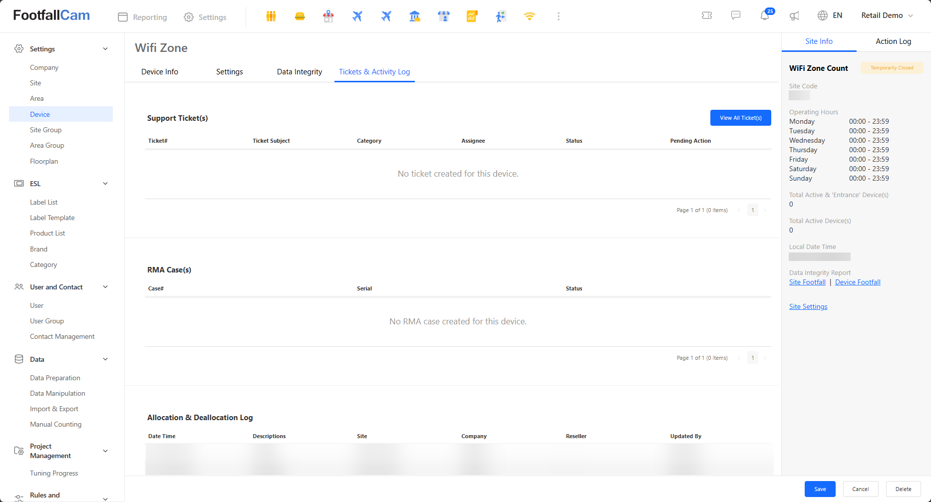 In this page, it will show all the tickets and the RMA(s) cases of this site. By using this page, you can directly reply to the ticket or view the response of the FootfallCam support team.