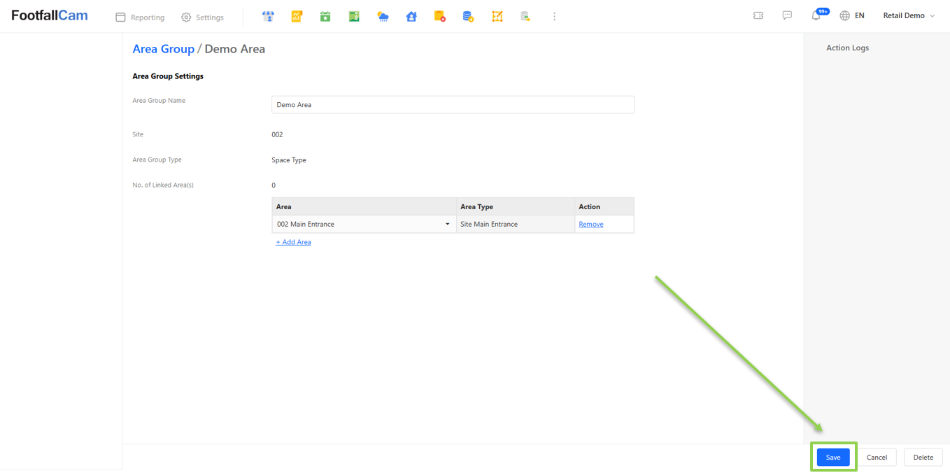 Step 2 - Update the area group tagging, then click on the "Save" button to save the changes.