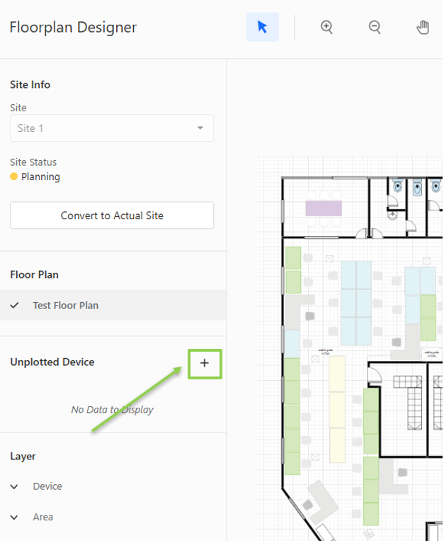 Step 4 - Click the "+" sign next to "Unplotted Device" to introduce a device to this floor plan.