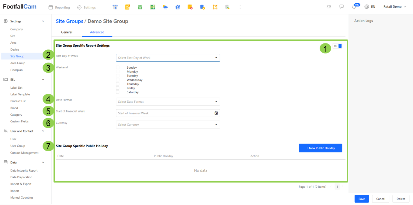 | 5. Site Group | Select the site group. (Info: Site group added will be apply to report feature. For more information on setting up site group, refer to Chapter 1.3 Setting Up Site Group.) |