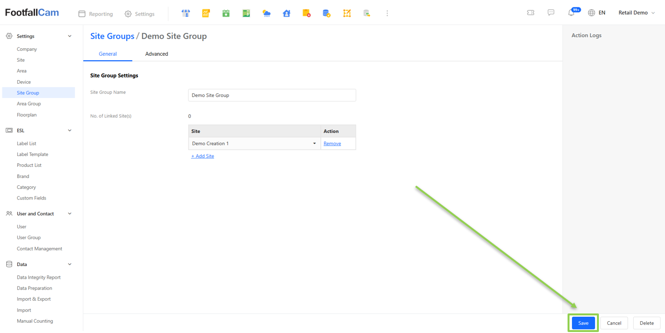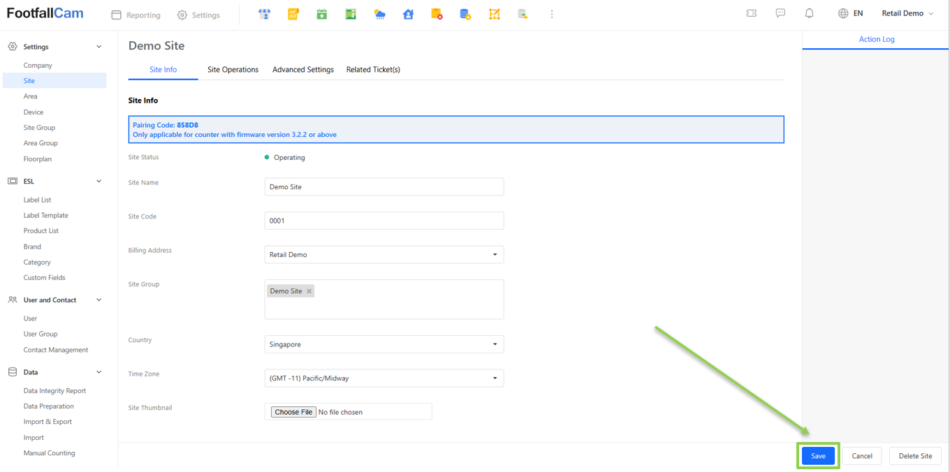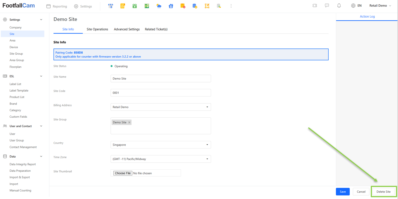 This section is mainly about edit the details of the existing site such as Site Name, Site Code, Country, TimeZone, and Site Group.