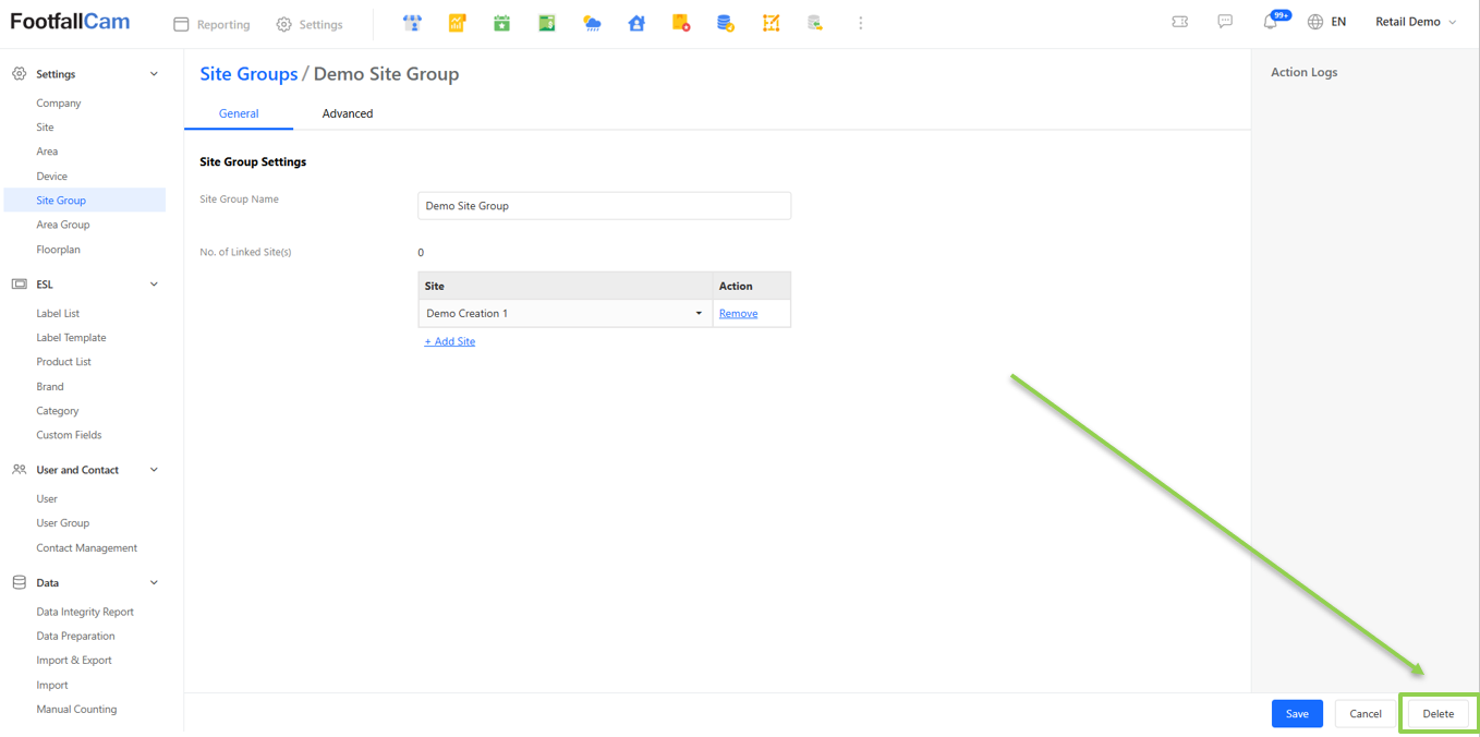 Step 1 - Click on Settings > Site > Edit button in Action column of the site to be deleted to access the specific Site page.