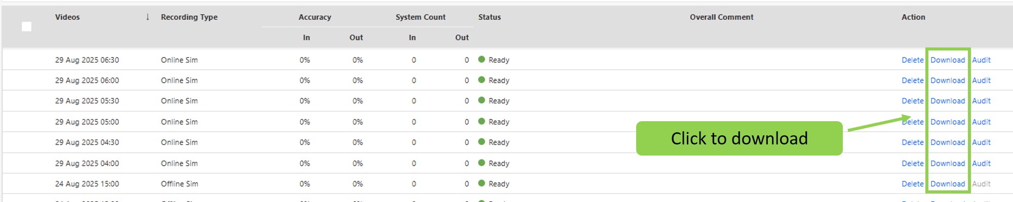 Step 3 - Start Recording and leave comments when there is undercounting/overcounting is observed from the live view