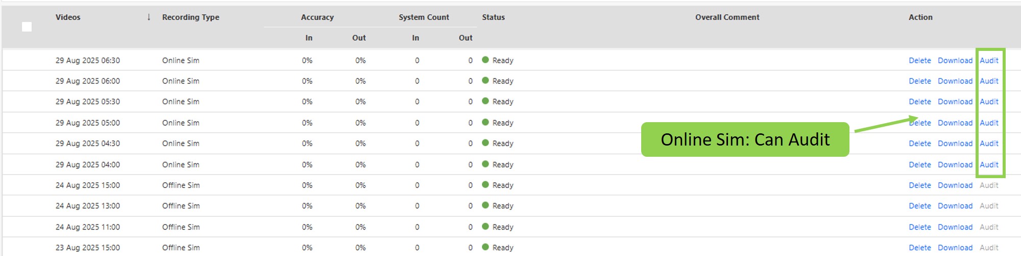 Step 7 - If the user has scheduled an "Online Sim" and the video has been successfully recorded, they can click the "Audit" button to perform "Self Accuracy Auditing". The user will be redirected to the "Accuracy Audit" page.