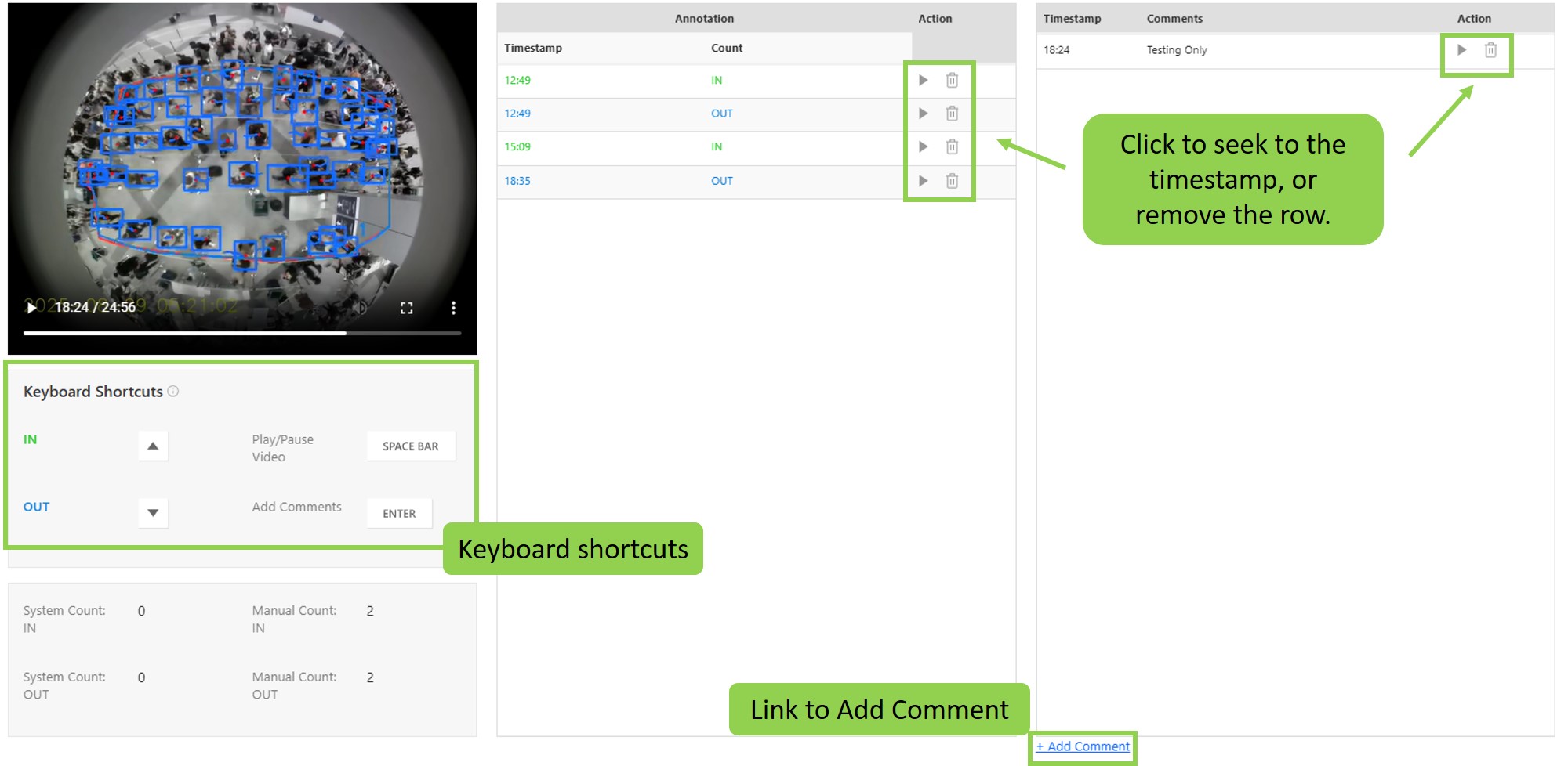 Step 9 - The user can now annotate the video. When the user observes any "IN" or "OUT" footfall, they can use the keyboard shortcuts to annotate.