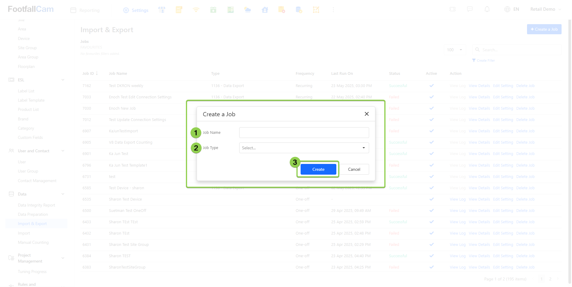 Step 3 - To create new import or export job, click on the + Create a Job button, then fill up the preferred job and select the job type, then click the Create button to proceed.