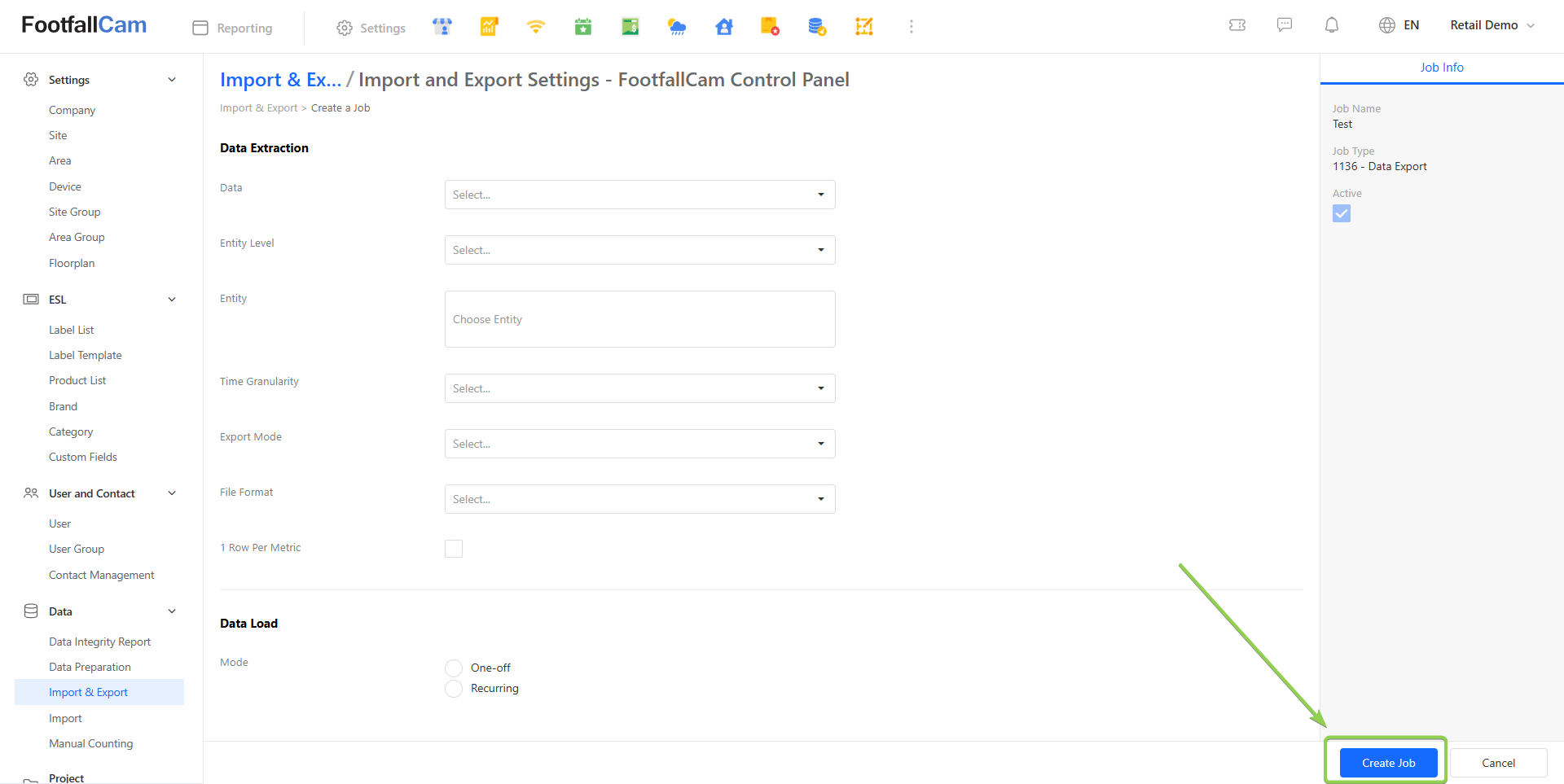 Step 4 - You will be redirected to the detail import export job page according to the job type selected. Fill up all the details and click on the Create Job button to create the job.