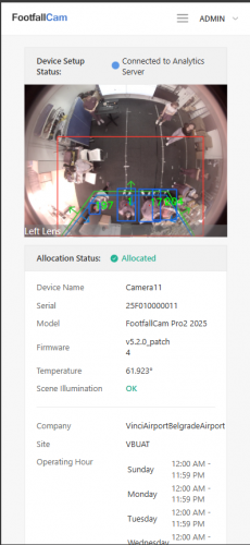 When users would like to use a new server for data access from the FootfallCam, the FootfallCam device manager must be logged in onsite to update the new server address. Once the server address is updated, the device must be re-allocated on the new server prior to data display.