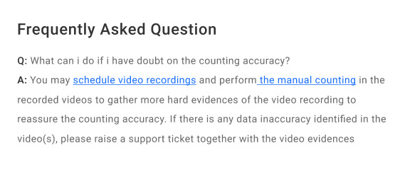 FAQs provide quick answers and solutions for common issues in the people counting system. It covers installation, troubleshooting, and optimisation, promoting self-help and saving time. Accessible resources empower users to resolve challenges independently.