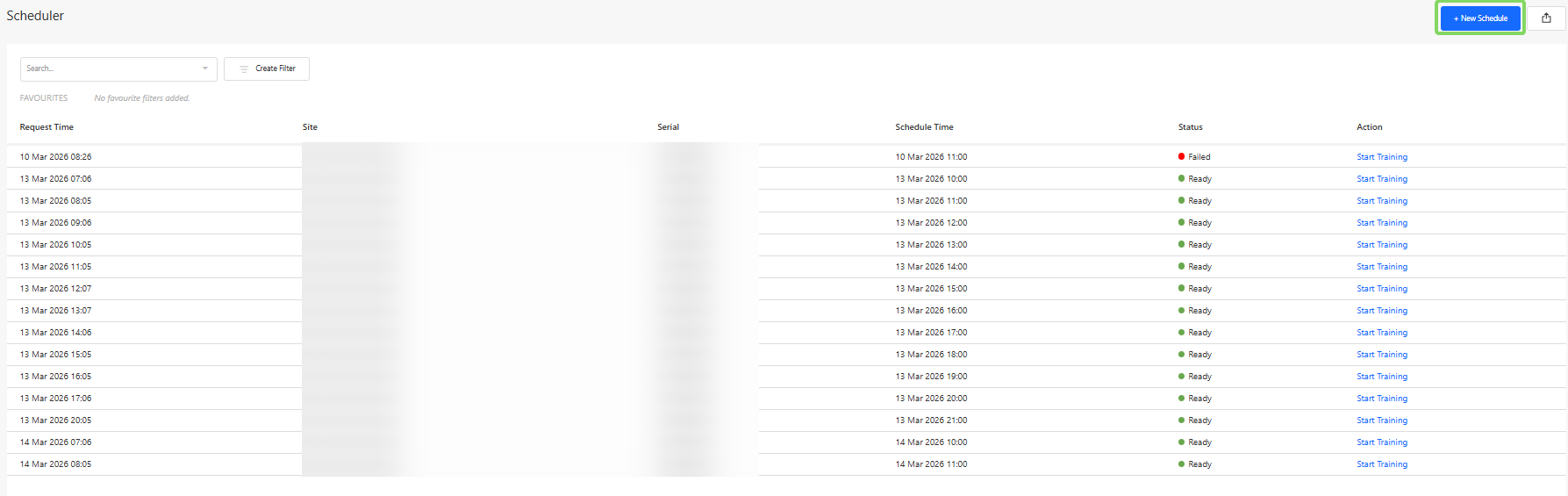 Users can schedule a campaign via the Scheduler Section, where images of each person entering the store at the scheduled hour are captured. To do so, press the "New Schedule" Button.