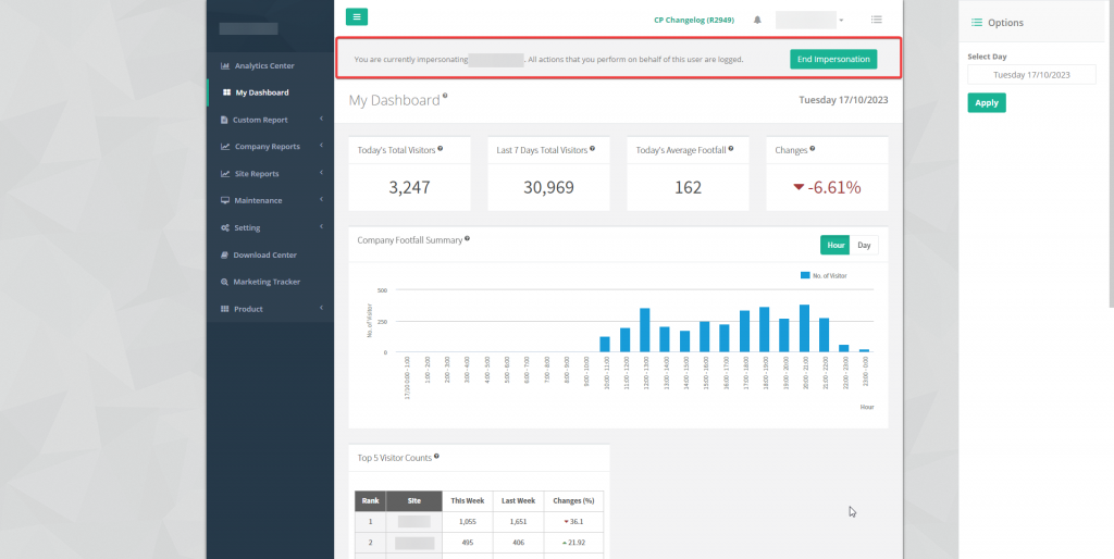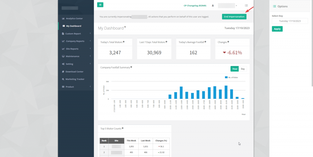 Click "End Impersonation" button to end impersonation session