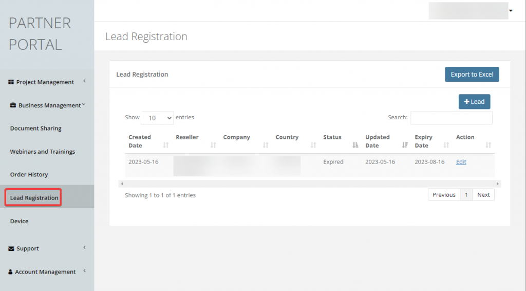 Under the Project section, two options could be discovered: Lead Registration and Portal Account Request.