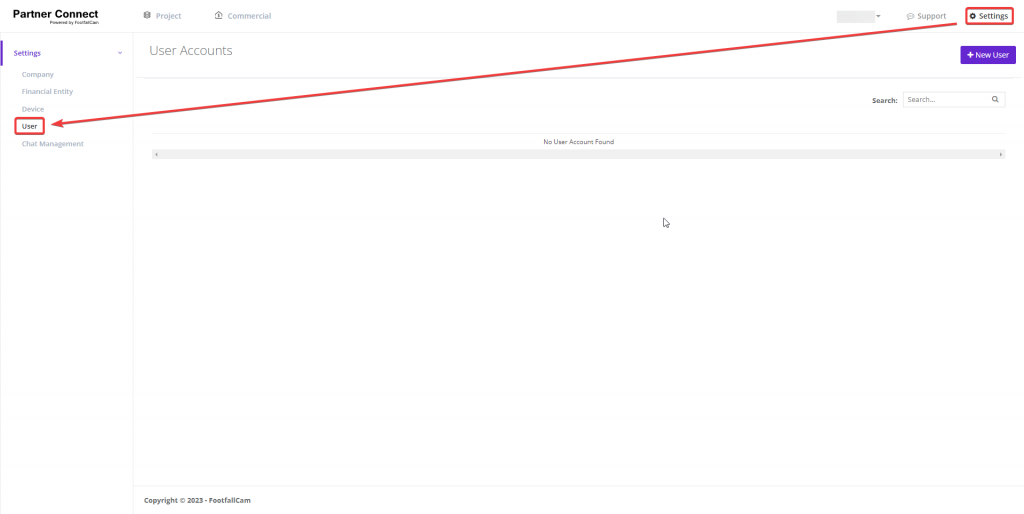 Project, Commercial, Support, and Settings.