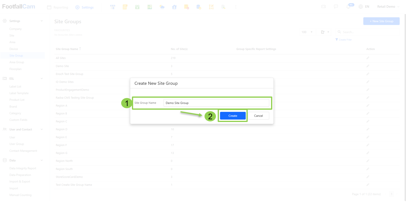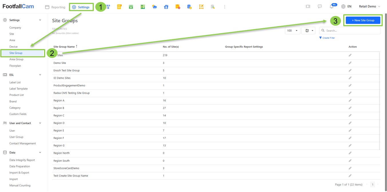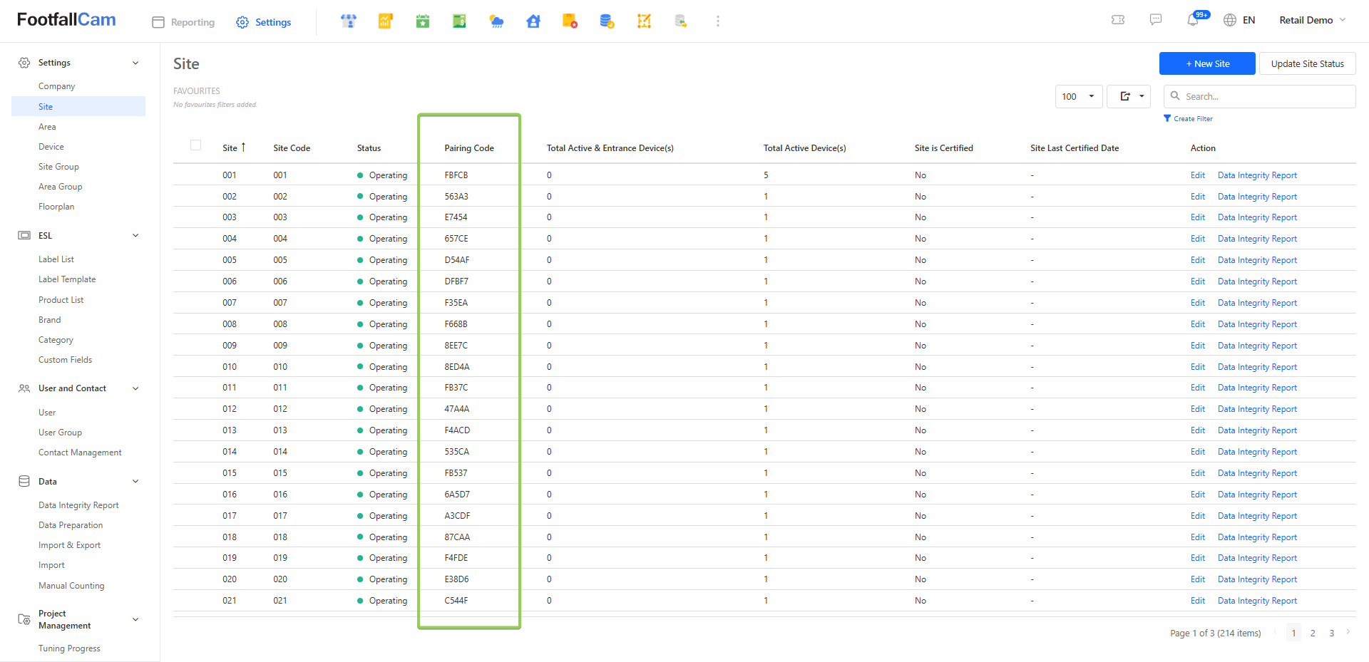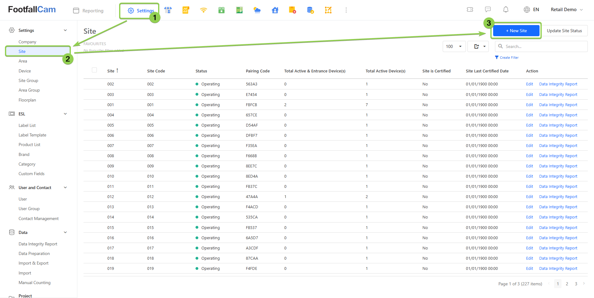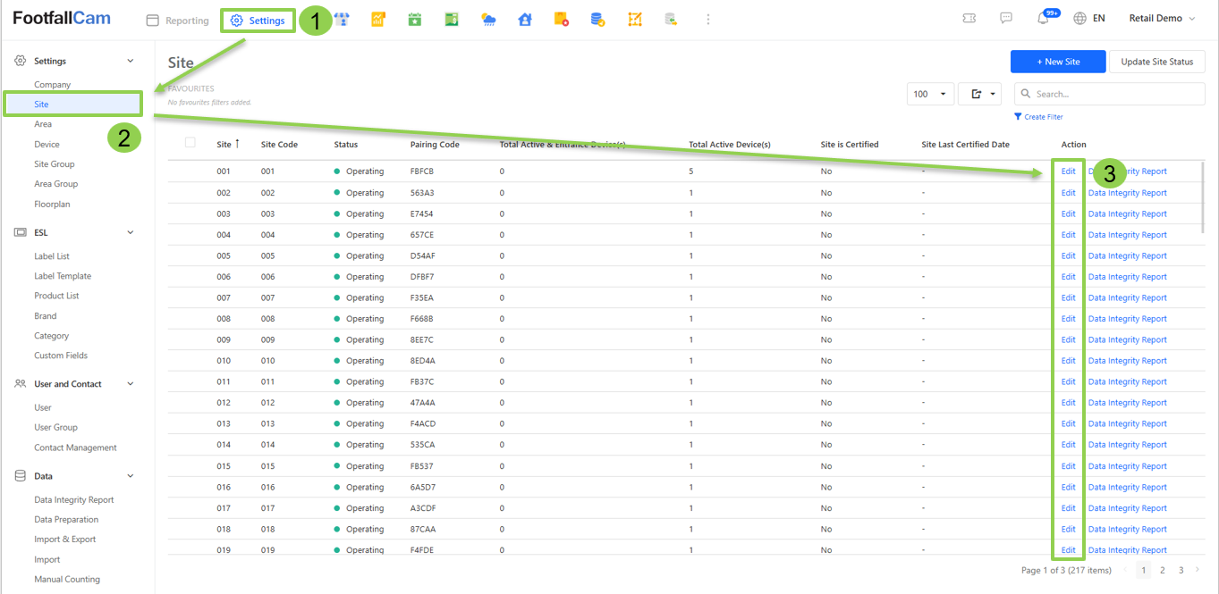 Site refers to a store of the company, grouping the devices installed at the respective store and summed the counting data collected from all the devices. For retail chain, one site per one store is required, so that the higher management able to review the overall company performance and individual store performance separately. Site creation is required before device can be added to the portal. In this section, we will explain about the set up related to sites such as create, edit and remove sites.
