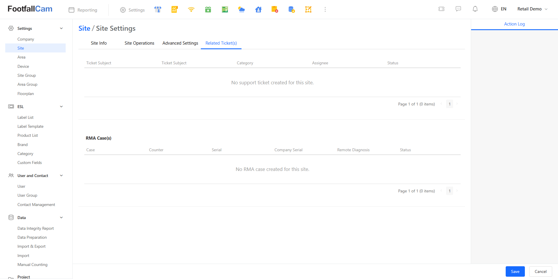 In this page, it will show all the tickets and the RMA(s) cases of this site. By using this page, you can directly reply to the ticket or view the response of the FootfallCam support team.