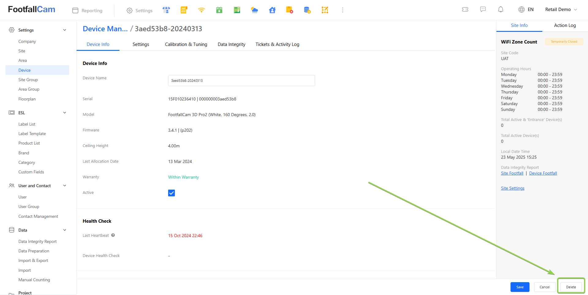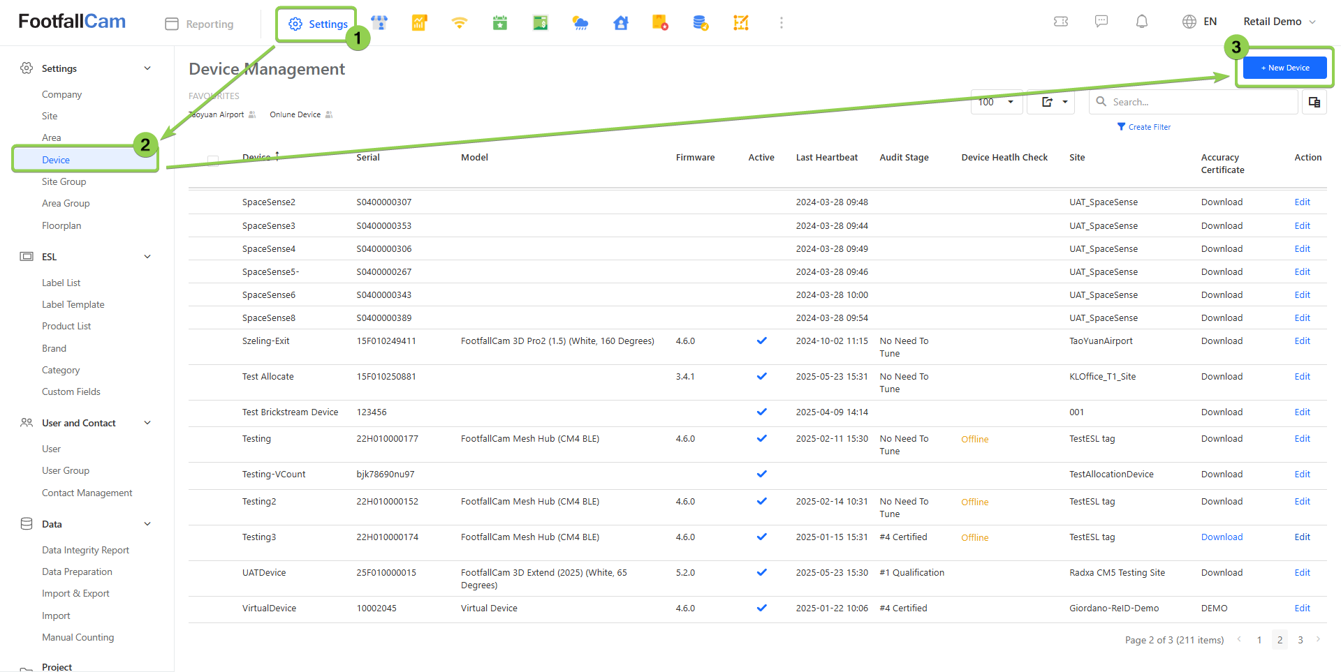 | 1. People Counting | Collect footfall metrics including Footfall In and Footfall Out. |