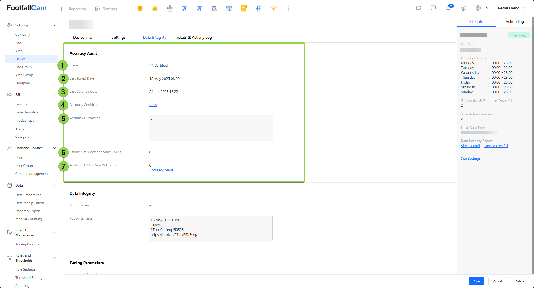 | 6. Site | The site of the area belongs to, to filter the devices contributing counting data to the area. |