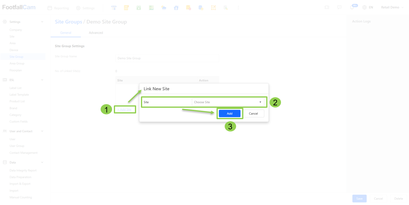 | 5. Site Group | Select the site group. (Info: Site group added will be apply to report feature. For more information on setting up site group, refer to Chapter 1.3 Setting Up Site Group.) |