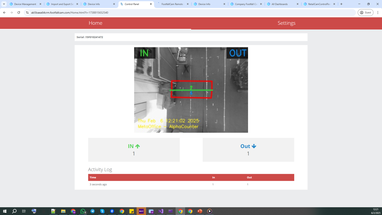 | 4 | The number of "In" and "Out" footfall as counted by the system. |