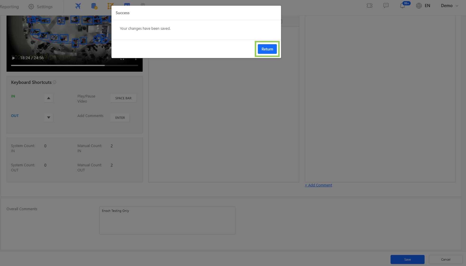 Step 9 - The user can now annotate the video. When the user observes any "IN" or "OUT" footfall, they can use the keyboard shortcuts to annotate.