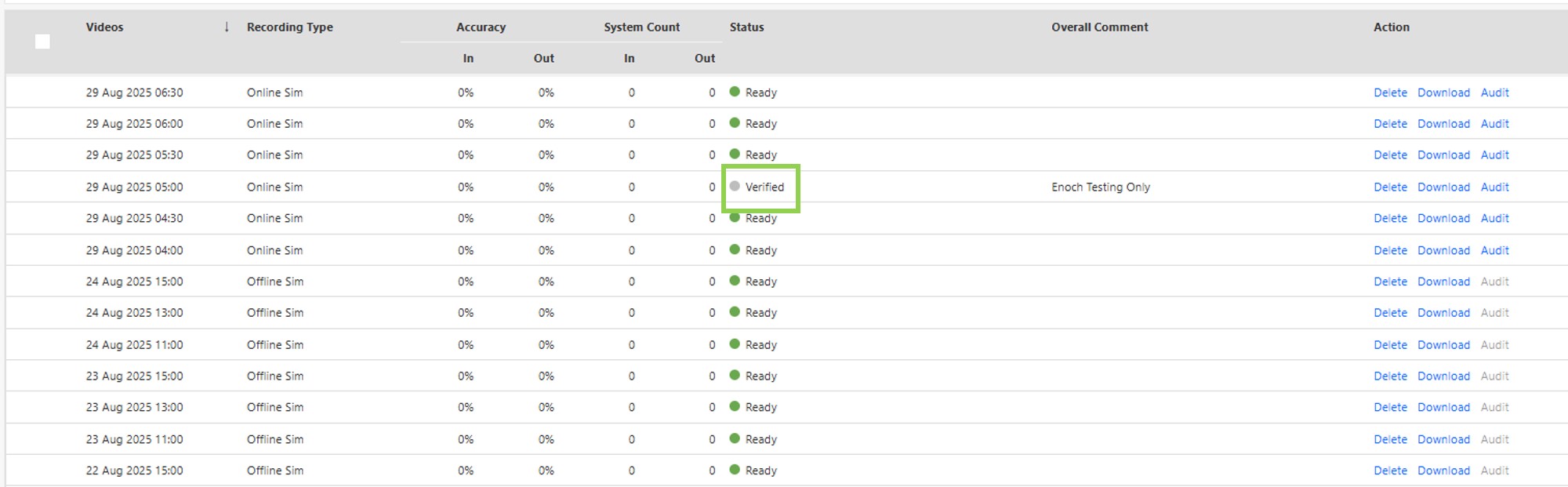 | Pre-Requisites | 1. Check the Device(s) status to ensure it is active, enabled with the 'Footfall Counting' and 'Site Entrance' counting usage and is currently Online (Note: 'Site Entrance' counting usage is only required if the data collected from this device is to be aggregated to the site level data) 2. Check the device accuracy audit stage to ensure it is tuned or certified (Note: Device is not ready for accuracy audit if it is not tuned or certified) |