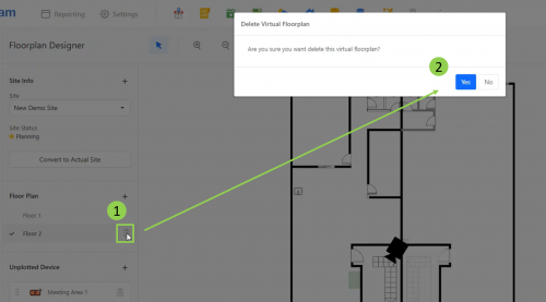 Step 9 - To remove the device from the floor plan, click the "bin" button next to it. This will return the device to the "Unplotted Device" section.