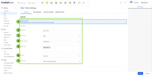 Site refers to a store of the company, grouping the devices installed at the respective store and summed the counting data collected from all the devices. For retail chain, one site per one store is required, so that the higher management able to review the overall company performance and individual store performance separately. Site creation is required before device can be added to the portal. In this section, we will explain about the set up related to sites such as create, edit and remove sites.