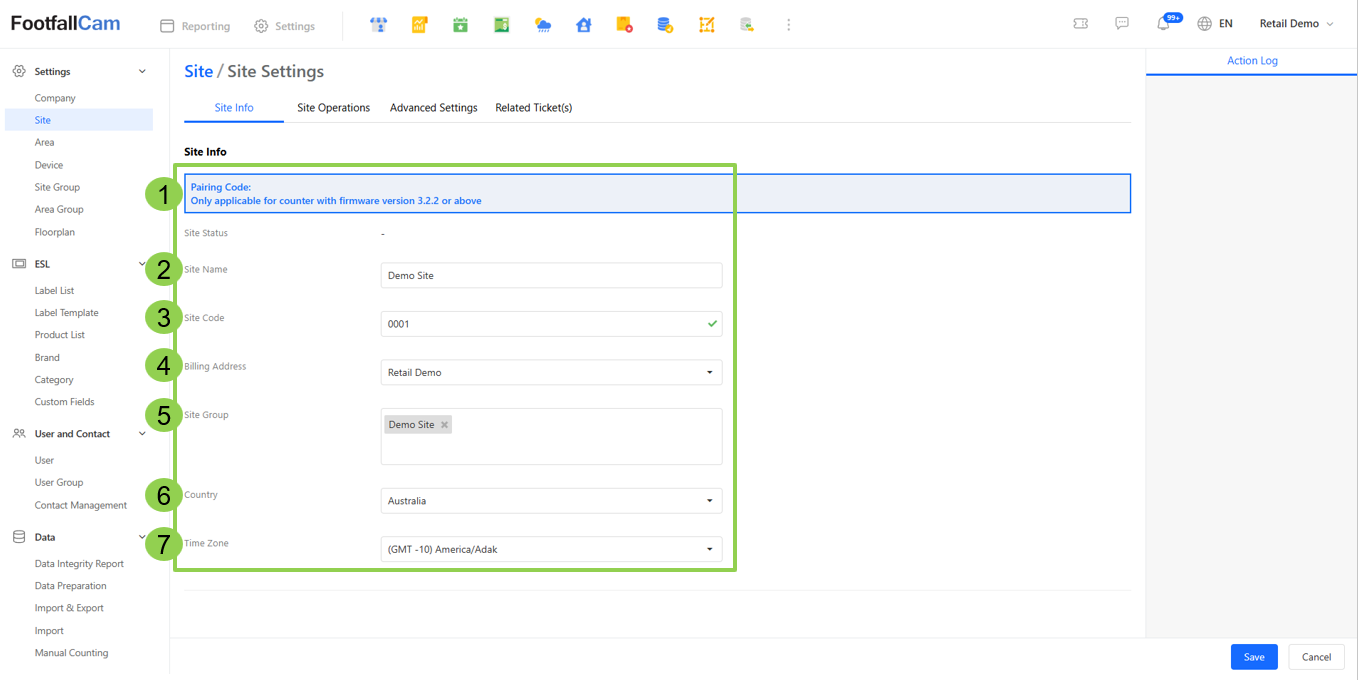 This section is mainly about edit the details of the existing site such as Site Name, Site Code, Country, TimeZone, and Site Group.