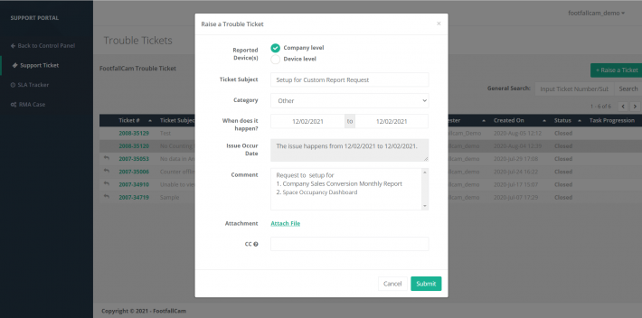 | Counter Daily Report | Shopping Malls | A comprehensive report on the footfall data of each individual counter installed in the shopping mall that list the total number of visitor count recorded by each individual counter on an hourly basis. | |