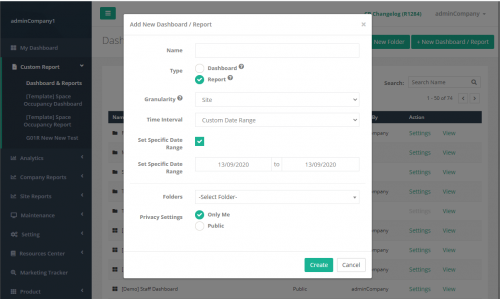 Users are required to choose the type of the report. For the Dashboard, it is used to monitor real-time data (e.g. Live Space Occupancy, Live Visitor Count, etc.) while for the Report, it is used to analyze the historical data (e.g. Daily Visitor Count, Monthly Visitor Count, etc.).