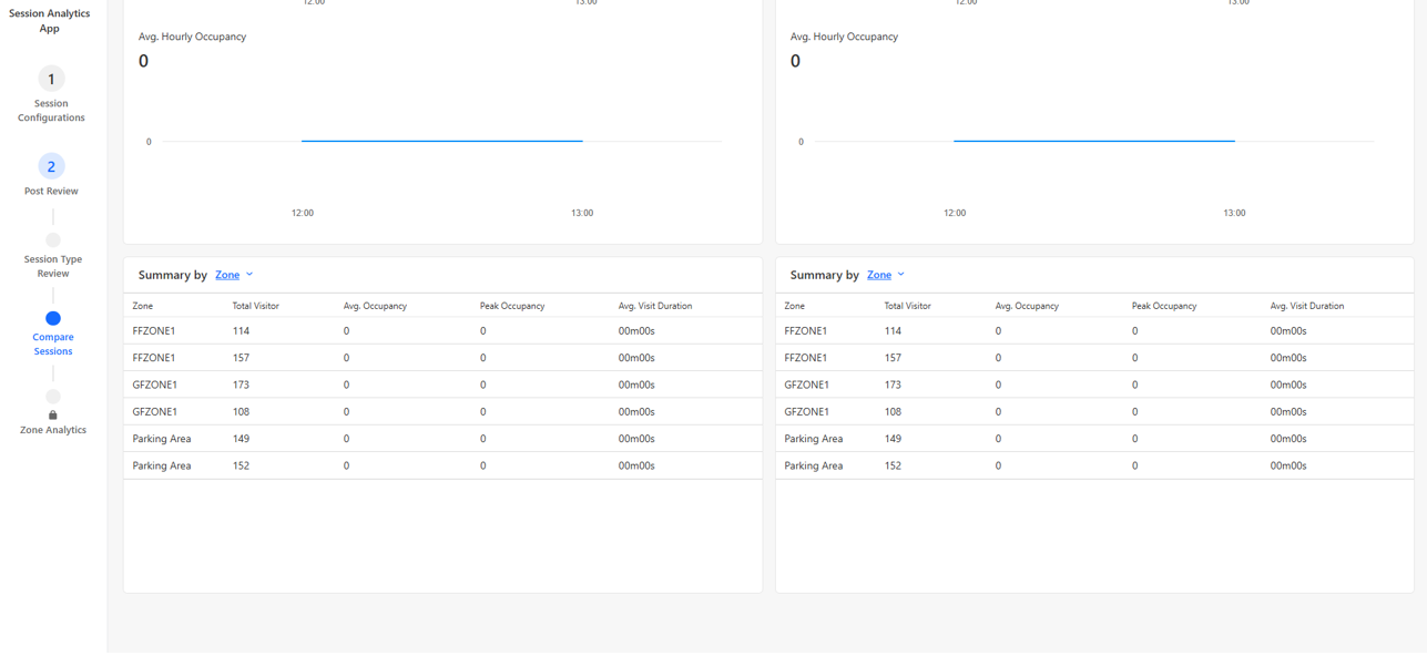 Compare Sessions allows users to first select a specific Site and choose a session type. From there, they can pick two session instances within that session - for example, the same session from different dates--to compare side by side. The dashboard then displays the data for both sessions, making it easy for users to identify differences, spot trends, and evaluate performance across sessions.