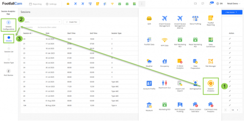 Step 1 - Navigate to Session Analytics > Session Configurations > Sessions.