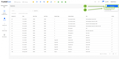 Session List allows users to choose a specific Site and apply a date range filter to see all sessions that were created for that Site within the selected date range. This makes it easy to focus only on the sessions that are relevant to a particular location and period, helping users quickly review, compare, and manage the data without having to go through unrelated sessions.