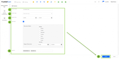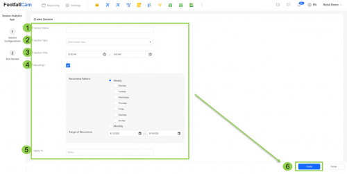 Enable to create multiple recurring session and specify the date range over which those sessions should repeat. |