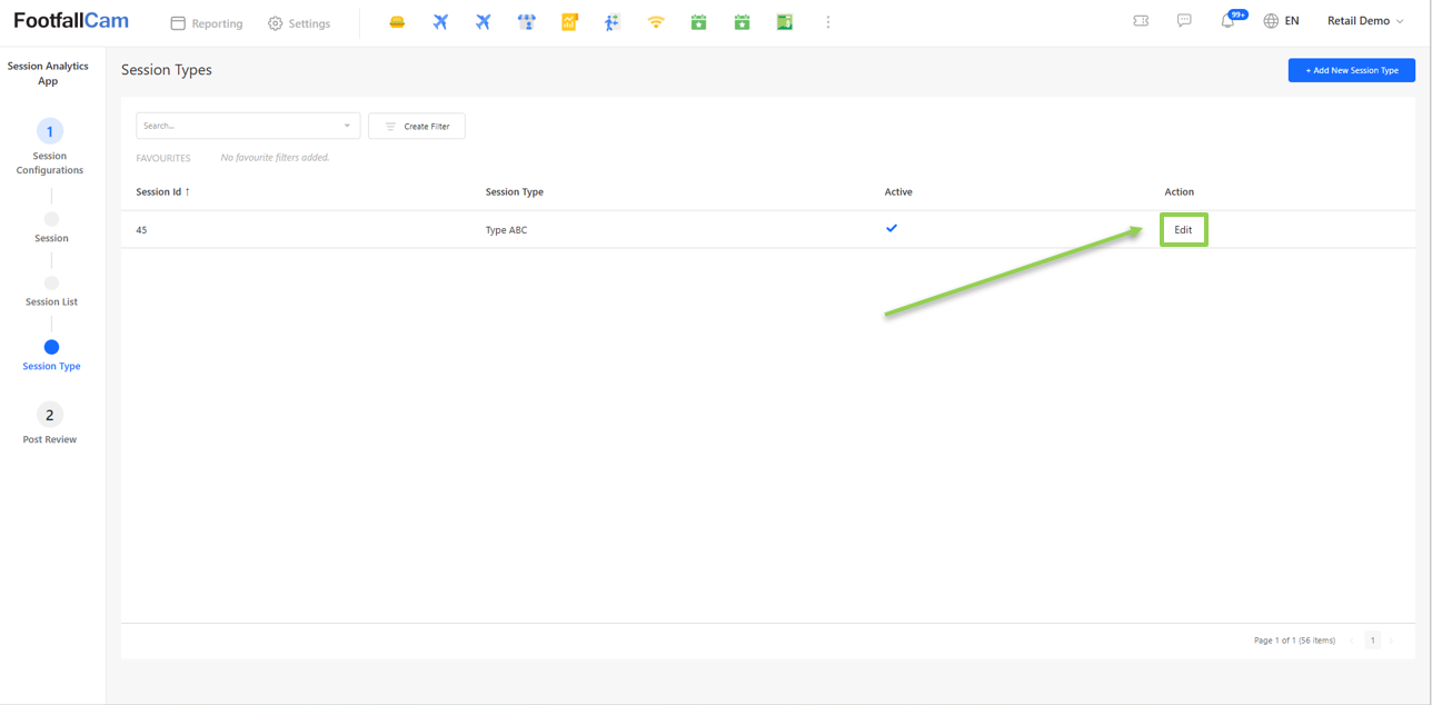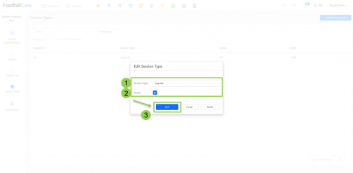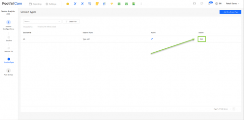Step 2 - Click on the Edit button of the particular session type row to open the session type settings popup.