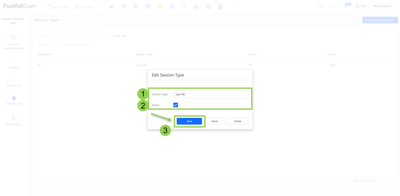Step 1 - Navigate to Session Analytics > Session Configurations > Session Type.